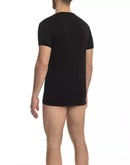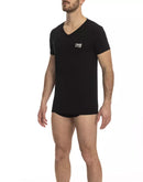 Indulge in the epitome of contemporary luxury with Cavalli Class’s sleek V-neck T-shirt. A bold testament to style, this top features the iconic printed logo, asserting its designer pedigree with effortless charisma. Crafted with the perfect blend of cotton and elastane, it promises both comfort and the ideal fit. Tailored to make a statement, this T-shirt is an essential addition to the modern man’s wardrobe. This versatile staple, boasting a rich black hue, is poised to elevate your casual ensemble to new heights of sophistication.