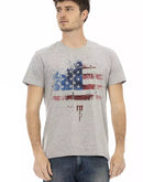 Elevate your casualwear with the Trussardi Action Short Sleeve Tee. This classic round neck T-shirt captivates with a bold frontal print, seamlessly blending luxury with streetwear style. Crafted from a soft blend of cotton and viscose, it offers both comfort and durability. Make a statement wherever you go with this gray staple piece that’s every bit as versatile as it is stylish. Exude confidence with Trussardi Action—the epitome of modern elegance.