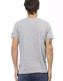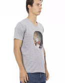 Elevate your casual style with the Trussardi Action V-neck T-shirt – a seamless fusion of comfort and contemporary fashion. Crafted from the finest blend of cotton and viscose, and boasting a chic front print, this gray tee is poised to become the cornerstone of your everyday wardrobe. Boldly embodying the Trussardi Action ethos, it’s a quintessential piece for the modern trendsetter.