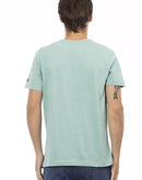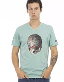 Infuse your wardrobe with the bold flair of Trussardi Action and elevate your style quotient instantly. Showcasing a striking front print, this vibrant green t-shirt boasts short sleeves and a flattering V-neck, making it the perfect blend of comfort and trendsetting fashion. Crafted with a luxurious mix of cotton and viscose, it offers unparalleled softness and a sleek silhouette. Perfect for those who dare to stand out.