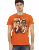 Unleash the essence of bold sophistication with Trussardi Action’s striking orange tee. A masterful blend of comfort and style, this short-sleeved round neck T-shirt boasts a captivating front print that demands attention. Perfect for the modern trendsetter who craves a splash of color in their wardrobe. Make a statement, make it Trussardi Action.