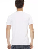 Elevate your casual wardrobe with the unmistakable style of Trussardi Action. This crisp white T-shirt boasts a sleek front print that captures attention, offering a perfect blend of simplicity and statement. Crafted from a comfortable mix of cotton and viscose, it’s the ultimate pick for those who appreciate fashion that speaks volumes without saying a word. Boldly embody the spirit of contemporary trends with Trussardi Action.