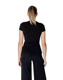The Armani Exchange women’s short-sleeved t-shirt, model XW000512 AF119291, is a must-have piece with a modern and refined design. Made from soft jersey fabric consisting of 92% cotton and 8% elastane/lycra, it offers a slim fit that enhances the silhouette while ensuring maximum comfort and freedom of movement. The Armani Exchange logo printed on the front adds a distinctive and contemporary touch, perfect for a casual-chic style. Ideal for any season, this t-shirt can be paired with jeans or tailored trousers for both everyday wear and more sophisticated outfits.