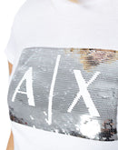 Discover the Armani Exchange 8NYTDL YJ73Z women’s short-sleeved t-shirt, an iconic piece that combines contemporary style with superior comfort. Crafted from 100% pure cotton, this t-shirt ensures a soft feel against the skin and a natural fit. The standout feature is the front application with a large AX logo in sequins, adding a touch of brightness and glamour to your look. The feminine cut and clean lines make it perfect for pairing with jeans or dressy trousers, ideal for both casual and more refined occasions. A versatile must-have for every trend-conscious woman’s wardrobe.