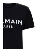 Balmain’s cotton T-Shirt combines the minimalism of a monochrome pattern with the elegance of the Maison’s iconic details. Made of soft cotton, it features a ribbed crew neck and a regular fit designed for everyday comfort. The design is enriched by the iconic Balmain monogram printed in contrast on the front and the unmistakable embossed buttons applied on the left shoulder, the brand’s distinctive signature. An essential and sophisticated garment, perfect for adding a touch of luxury to casual looks.