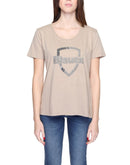 The Blauer women’s t-shirt, model 24SBLDH02383, is an essential piece with a modern and versatile design. Crafted from 100% high-quality cotton, it provides a soft and comfortable feel on the skin, perfect for year-round wear. The t-shirt features a regular fit with short sleeves and a round neckline, ensuring freedom of movement and a casual look. The standout detail is the Blauer logo on the front, embellished with tone-on-tone sequins that add a touch of sparkle and originality. Ideal to pair with jeans or casual trousers, this t-shirt is perfect for those seeking a simple yet refined style.
