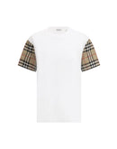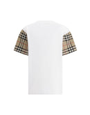 Burberry’s Cotton Check Archive Sleeve T-shirt is a garment that combines comfort with distinctive style. Featuring a ribbed collar, this T-shirt features sleeves embellished with the iconic Archivio Check pattern, one of the brand’s historic motifs. The simple, clean design of the T-shirt body highlights the sleeves with the famous pattern, creating a stylish and recognizable contrast.