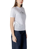 Discover casual elegance with the short-sleeve women’s t-shirt from Calvin Klein Jeans. Made from 100% cotton, this shirt offers exceptional comfort and a soft fit against the skin. The minimalist design is enhanced by the iconic brand logo, making it a versatile piece to pair with jeans, skirts, or trousers. Perfect for spring and summer days, this t-shirt is ideal for an informal yet chic look suitable for various occasions.