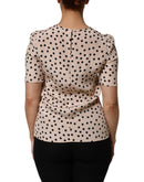 Dolce & Gabbana Beige Black Polka Dot Silk Short Sleeve Blouse Top