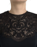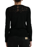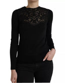 Dolce & Gabbana Black Silk Lace Trim Long Sleeves Blouse Top