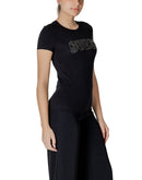 The Guess CN SS LOGO LACE TEE women’s short-sleeve t-shirt (model W5GI04 J1314) combines comfort and style in a versatile and feminine piece. Made from a soft blend of 95% cotton and 5% elastane/lycra, this t-shirt offers stretch and a flattering slim fit. The front features the iconic GUESS logo embellished with lace details and sparkling accents, adding a refined and glamorous touch. The classic crew neck and well-finished hems make this t-shirt perfect for any occasion, from everyday wear to leisure time.