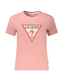 Dare to stand out with the Guess Jeans slim-fit tee, crafted for the fearless fashion enthusiast. This short-sleeved, crew-neck t-shirt boasts a bold print and iconic logo, ensuring your style speaks volumes. Made from a blend of organic cotton and a touch of spandex, it guarantees a perfect fit with eco-conscious comfort. Sourced with care from Bangladesh, this pink top is a must-have for trendsetters worldwide.
