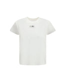 The cotton T-shirt by MM6 stands out for its essential yet refined style. Made of soft cotton, it features a ribbed crew neck that adds a touch of texture and structure to the garment. The minimalist design is enhanced by the logo patch sewn on the front, an iconic detail that expresses the brand’s contemporary and recognizable aesthetic. Versatile and comfortable, this T-shirt is perfect for completing casual looks with an accent of understated elegance.