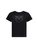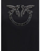 Pinko’s T-Shirt is distinguished by the embroidered logo on the front, enriched with rhinestones and pearls that give the garment a touch of brightness and elegance, perfect for a refined and feminine look.