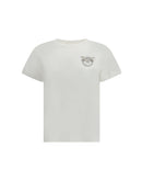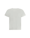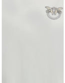 Pinko’s T-Shirt features a logo embroidered with rhinestones and pearls positioned on the left side of the front, adding a precious and refined detail that embellishes the simple and contemporary design of the garment.