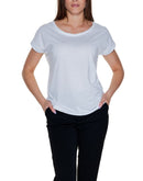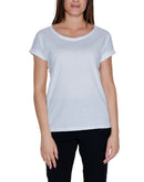 The Vila Clothes VIDREAMERS NEW PURE NOOS women’s short-sleeved t-shirt is the perfect choice for those seeking everyday style and comfort. Made from a blend of 50% cotton and 50% polyester, this t-shirt provides a soft, pleasant feel on the skin, ensuring breathability and long-lasting durability. The essential design features a round neckline and slightly rolled-up short sleeves, making it versatile and easy to pair with both casual and more refined outfits. Suitable for every season, this t-shirt is perfect for leisure time or informal outings. The straight cut gently enhances the silhouette without restricting movement, offering maximum comfort.