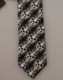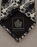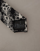 Dolce & Gabbana Black White Flower 100% Silk Print Adjustable Accessory Tie