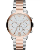 Emporio Armani Silver and Bronze Steel Chronograph Watch