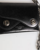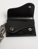 Dolce & Gabbana Black Cavallo Leather Wallet Chain Snap Bifold Card Holder