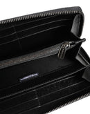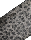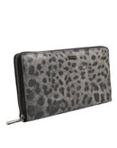 Dolce & Gabbana Black Gray Leopard Leather Zip Around Continental Wallet