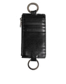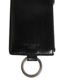Dolce & Gabbana Black Leather Logo Embossed Lanyard Card Holde Wallet