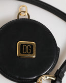 Dolce & Gabbana Black Round Leather DG Logo Coin Purse Lanyard Wallet