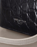 Dolce & Gabbana Blue White Caiman Leather Strap Card Holder Wallet