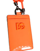 Dolce & Gabbana Orange Leather Logo Embossed Lanyard Card Holder Wallet