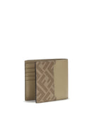Fendi’s FF leather and canvas bifold Wallet combines functionality with refined style. The interior is organized with 8 card slots, two bill compartments and a flat back pocket. Made of beige leather with tone-on-tone FF Canvas details, it is embellished with the Squared FF motif in palladium-finished metal.