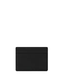 Leather Grain De Poudre Credit Card Holder from Saint Laurent, two slots card on front and back, one open pocket for coins, embossed brand logo on front.