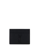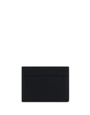 Calfskin Card Holder by Saint Laurent, card slots on front and back, plaque with iconic brand logo embossed on front.