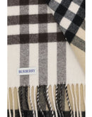 The cashmere Check Scarf by Burberry with Contrasting Colors is an iconic accessory that combines tradition and modernity. Made of double-sided cashmere, it features the refined Equestrian Knight Design jacquard pattern on one side and the classic Burberry Check reinterpreted in contrasting colors on the other. The rectangular shape and fringing at the ends complete the design, making it an elegant and versatile choice for any occasion.