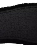 Dolce & Gabbana Black Polyester Faux Fur Mens Flats Sandals Shoes