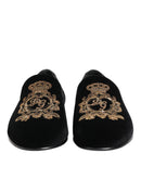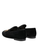 Dolce & Gabbana Black Velvet Gold Crown Mens Loafers Shoes