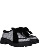 The product with MPN MARLOWMOCASSINIFQJPSILVERBLACK and code F82685 glitter in silver is a loafers designed by Jimmy Choo. It has features like front detail, side logo.