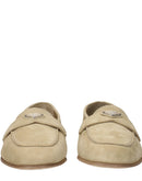 The product with MPN 1D468N103010F0379 and code F84701 suede in beige is a loafers designed by Prada. It has features like front logo.