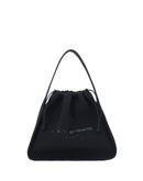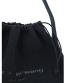 The Ryan large Handbag by Alexander Wang is an accessory with an urban, modern style. Made of ribbed fabric, it features a drawstring top closure and single flat handle for easy carrying. The brand’s iconic tone-on-tone signature on the front adds an understated yet recognizable touch, making this bag perfect for a contemporary and versatile look.