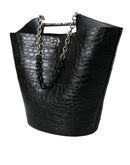 Balenciaga Black Exotic Skin Leather Maxi Bucket Tote Purse Bag