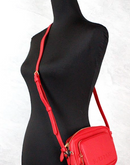 Burberry Small Branded Bright Red Grainy Leather Camera Crossbody Bag
