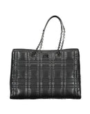 bag with 2 chain shoulder handles, 2 compartments, 1 central pocket, 1 inside pocket, contrasting details, zip and snap closure, logo, 100% recycled polyester