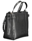 Elevate your everyday style with the sophistication of Calvin Klein. This handbag is a testament to sleek aesthetics, featuring a pair of sturdy handles, an adjustable and removable shoulder strap for versatile carrying options. The contrasting details add a daring edge to its classic black silhouette. Secure your essentials in the streamlined zip closure compartment, which includes a handy inside pocket. Crafted from a blend of 51% polyester and 49% polyethylene, this bag is not just about looks—it’s a sustainable choice, echoing your commitment to eco-conscious fashion.