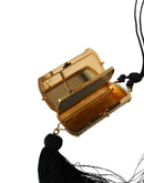 Dolce & Gabbana Beige Exotic Leather Mini Mirror Tassel Make Up Holder Bag