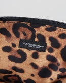Dolce & Gabbana Blue Logo Print Hand Pouch Leopard Print Toiletry Bag