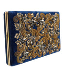 Dolce & Gabbana Blue Velvet Gold Frame Clutch Evening Party Purse Bag