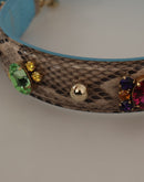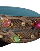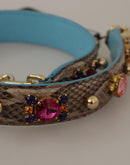 Dolce & Gabbana Brown Exotic Leather Crystals Shoulder Strap