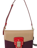 Dolce & Gabbana Purple Beige Red Leather Crossbody Purse Bag