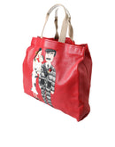 Dolce & Gabbana Red Leather #DGFamily Patch Shopping Tote Bag