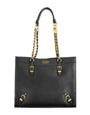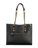 Make a bold statement with this Guess Jeans classic handbag, the epitome of chic sophistication. Perfectly sized to carry all your essentials, it features a sleek black hue with contrasting details that add an edgy touch to its elegance. Dual chain shoulder handles provide versatile carrying options, while the zip closure secures your belongings. Stay organized on the go with two external pockets for quick access items, an internal pocket, and dedicated spaces for documents. It’s not just an accessory; it’s a reflection of style and functionality.