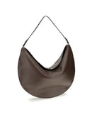 The Ovalo Bag by Jacquemus is an elegant large hobo bag crafted from smooth leather, featuring a slim shoulder strap for easy carrying. The flap with a large engraved snap button ensures secure closure, while the interior includes a leather zip pocket and slots for credit cards. The embossed logo and fully cotton-lined interior complete this refined and versatile accessory.