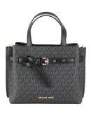 Michael Kors Emilia Small Black Signature PVC Satchel Crossbody Handbag Purse